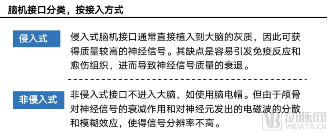 侵入式技术壁垒较高:侵入式技术通常需要进行开颅手术,将电极植入到大脑皮层采集脑电信号,但也极易引发人体的排异反应;非侵入式设备只需要用电极连接头皮来获取信号,对人体伤害较小,技术难度较低。
