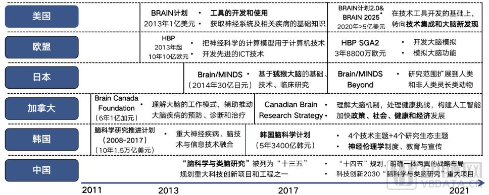 1.1 全球各国脑计划风起云涌,美国技术暂时领先