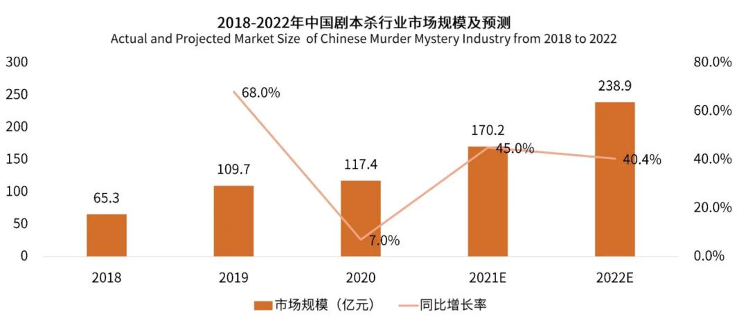 数据显示,2020年中国剧本杀市场规模已达117.4亿元,预计到2022年中国剧本杀行业市场规模将增至238.9亿元。