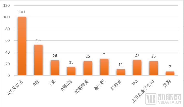 从融资轮次来看,早期企业占据了最大比重,处于A轮或A轮以前的企业有101家,其中56家均成立于2015年以后。