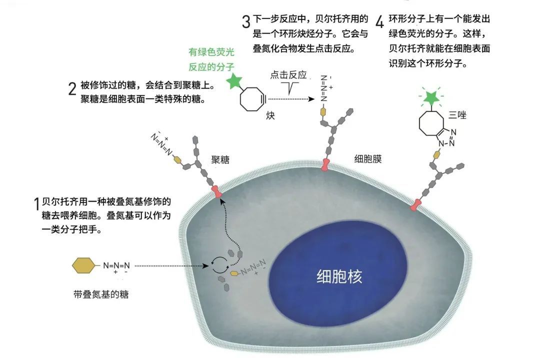贝尔托齐为细胞上的聚糖分子加入荧光标记 | nobelprize