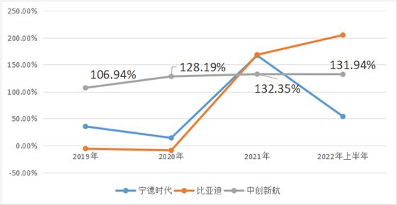 以市场份额来说,宁德时代最大的对手是比亚迪;但就增速而言,对宁德时代威胁最大的公司或许是中创新航。自2018年中创新航开始发力动力电池以来,其装机量以每年100%以上的增速增长,在全球主要动力电池厂商中独此一家。