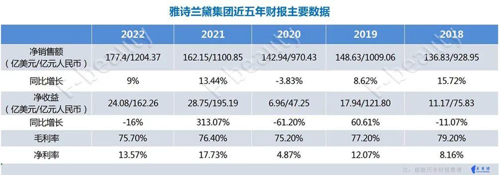 据雅诗兰黛集团公布2022财年全年业绩,截至2022年6月30日的财年净销售额为177.4亿美元(约合人民币1204.37亿元),同比增长9%;净收益为24.08亿美元(约合人民币162.26亿元),同比下降16%。在市场逆风的情况下,出现了增收不增利的局面。