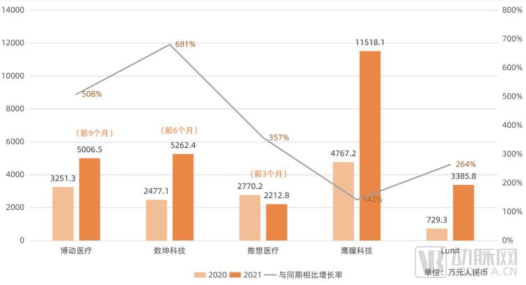 上市之后,多家企业表现不俗。营收均呈现出不同幅度的正增长,表明市场进一步拓展。其中数坤科技2021年上半年同比增长达681%,收入已成规模的鹰瞳科技仍然录得142%的增长,2021年全年营收破亿。