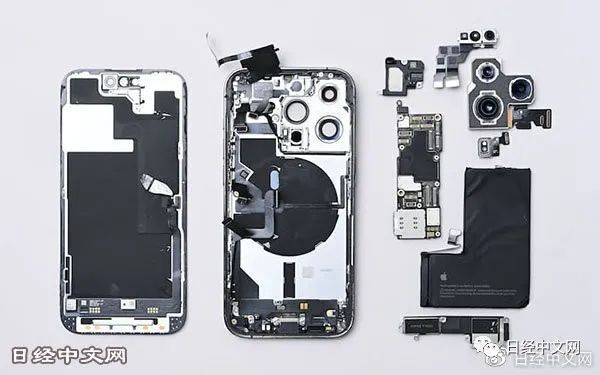 拆解后的iPhone14 Pro。半导体和相机部件的超高功能脱颖而出