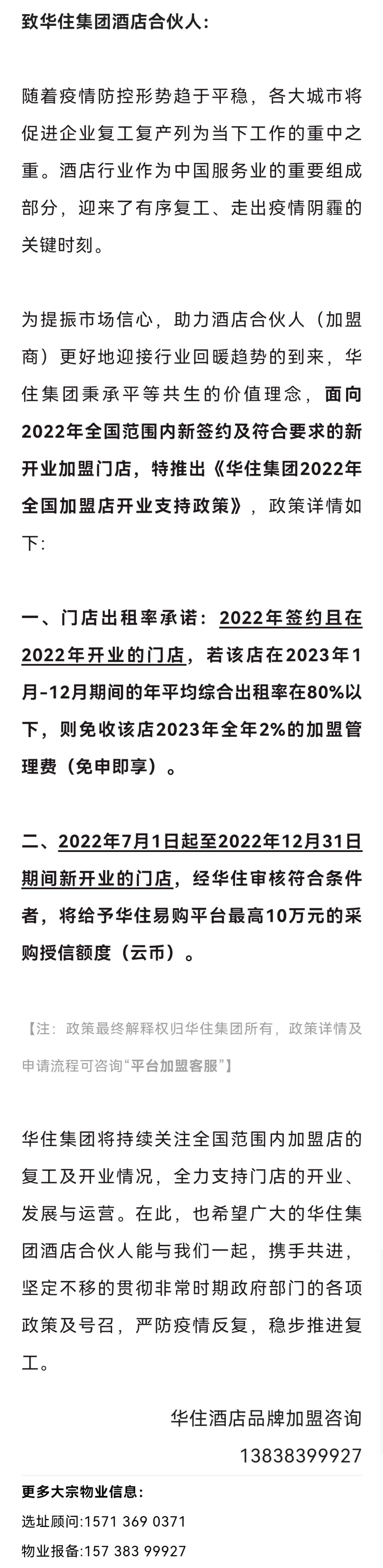 所谓华住率先推出的“行业对赌内容”,是指7月1日华住表示,凡2022年年内签约以及开业的门店,若该店在2023年1-12月期间年平均综合出租率在80%以下,则免收该店2023年全年2%的加盟管理费。