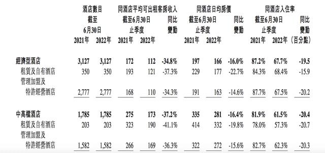 从华住公布的半年报来看,一季度华住在国内的经济型酒店RevPAR为105元,较2021年同期下降8.5%;同酒店入住率为62.9%,同比下降8.6%。而中高档酒店的RevPAR为164元,较去年同期下降9.4%;同酒店入住率为56.8%,同比下降7.6%。(编者按:RevPAR为Revenue Per Available Room的缩写,指每间可供租出客房产生的平均实际营业收入。)