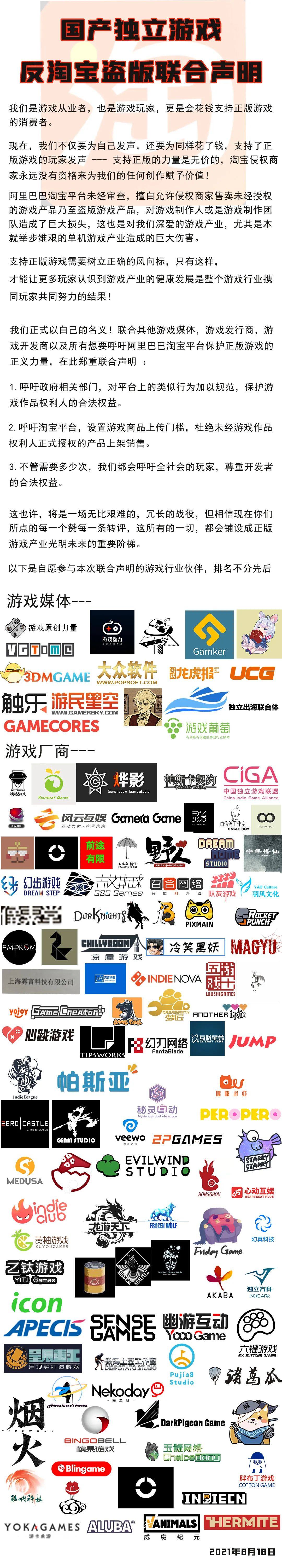 同一天里,许多开发团队都转发了一则国产独立游戏的反盗版联合声明,大量游戏媒体与厂商留下署名,呼吁人们尊重保护开发者们的合法权益。