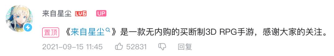 高调的澄清表态换来了玩家社群的一致褒扬。尽管用户对《来自星尘》PV中呈现的细节有各种看法,但唯独在“买断制”这一点上,几乎所有人都感到满意。