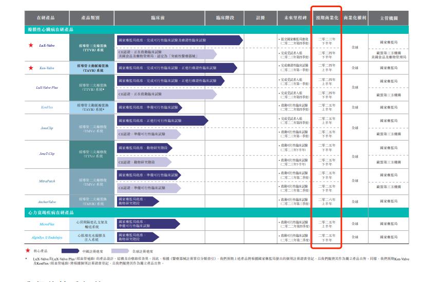 根据弗若斯特沙利文的资料,鉴于LuX-Valve为世界首款完成确证性临床试验受试者入组的在研产品,预期其将成为全球首批获准商业化的经导管三尖瓣置换产品之一。