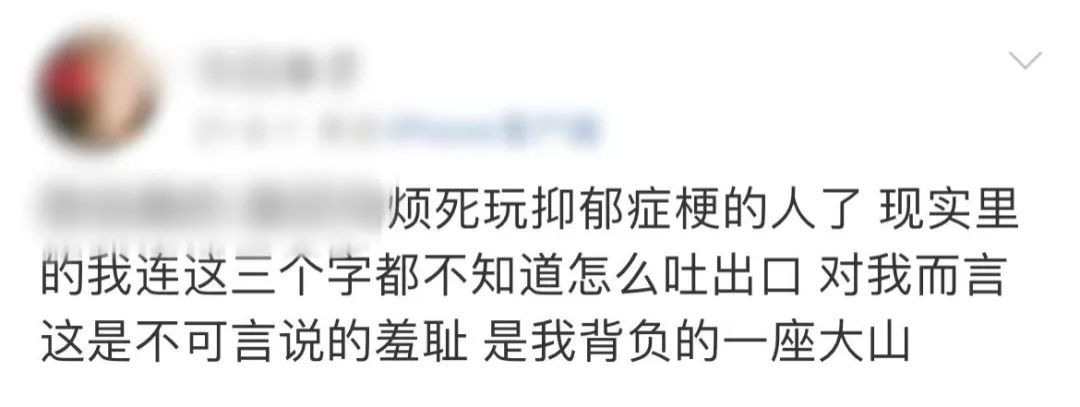 在这种得了病却不被理解和接纳的环境下,许多抑郁症患者产生了“病耻感”,因为得病而陷入羞耻等负面情绪。