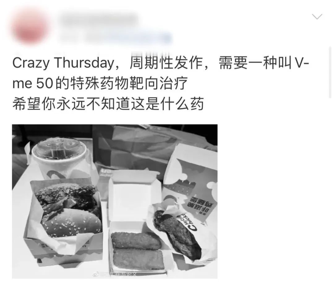 “Crazy Thursday(疯狂星期四)周期性发作,需要一种叫做V-me50的特殊药物靶向治疗”。