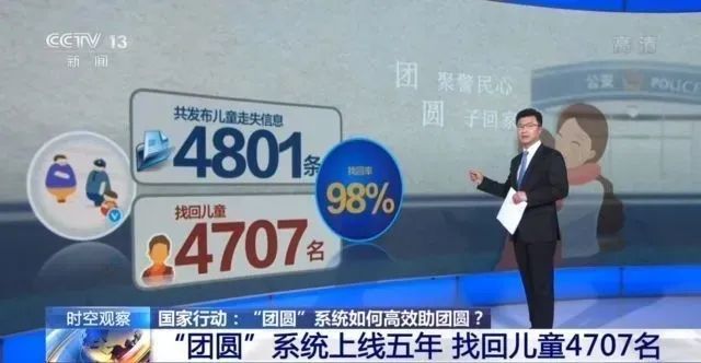 这是由公安部与阿里巴巴集团共同开发的一套全国打拐民警的警务协同系统,五年来共发布儿童走失信息4801条,找回4707名儿童,找回率为98%。