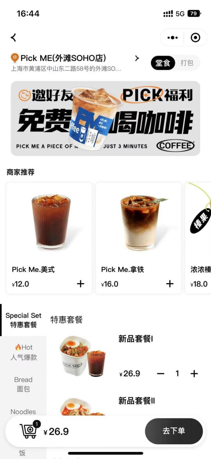 官网信息显示,“Pick MEの咖啡&热食”主打咖啡消费新搭配,为年轻族群与上班人士提供一杯好喝不贵的咖啡,让一杯咖啡成为年轻人的流行生活主张。