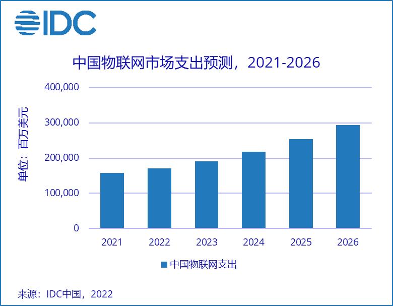 不过,IoT领域这块蛋糕足够大,后发也并不是没机会。据IDC最新预测数据,2021年全球物联网(企业级)支出规模达6902.6亿美元,并有望在2026年达到1.1万亿美元,五年(2022-2026)复合增长率(CAGR)10.7%。其中,中国企业级市场规模将在2026年达到2940亿美元,复合增长率(CAGR)13.2%。