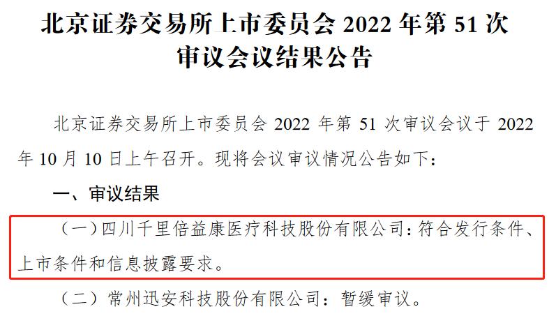 据北交所官网显示,倍益康申报材料于2022年6月27日获受理,9月23日完成第二轮问询回复,10月10日过会。