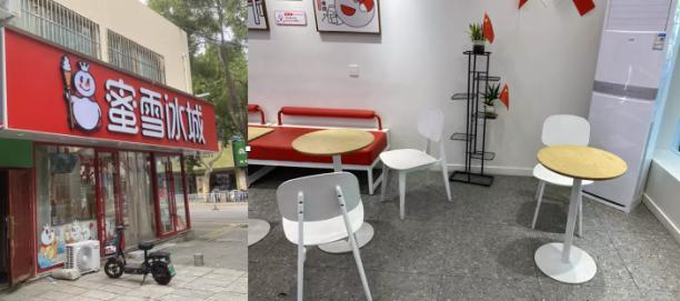 经历大幅度降温的山东小县城,早晨清冷,9点半的蜜雪冰城开了空调,迎来了第一波客人。与一二线城市寸土寸金的铺面比,小镇的铺面大气很多,三四十平,几个长椅圆桌,位置宽敞,操作间纵深很长。