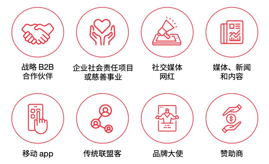 值得注意的是,如今出海营销的合作伙伴生态已经具有多样性,除了以Coupons、Deals、Cashback网站等为主的传统联盟客,还有媒体等内容营销流量主、社交媒体网红、B2B战略合作伙伴、移动App合作伙伴等。不同类型的合作伙伴能够或因优质的产品和服务、成功的商业模式,或因有影响力的内容创作而获得相应受众群体的信任与关注。