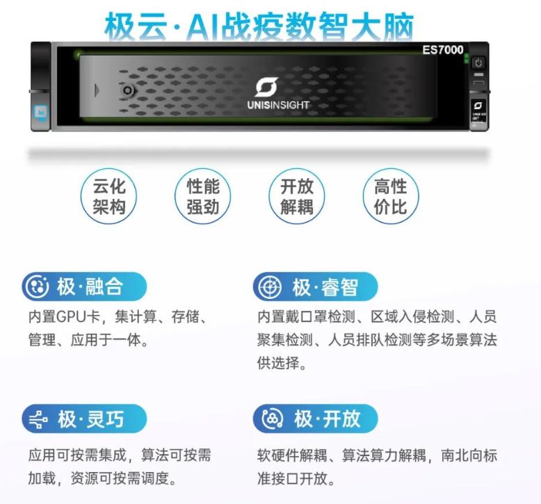 根据教育部的防疫要求,结合高校校园防疫特点,紫光旗下紫光华智推出校园AI抗疫解决方案,搭载极云·校园数智大脑——紫光华智ES7000,通过AI视觉技术开启四“极”全方位战疫。