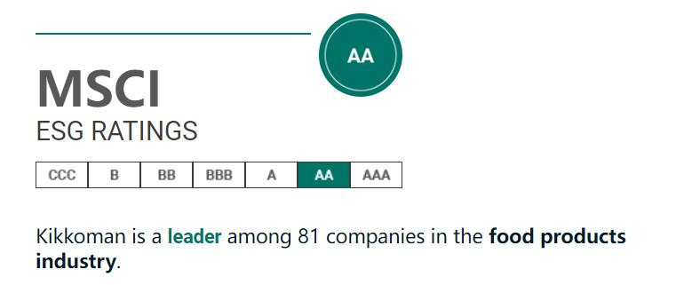龟甲万(Kikkoman)在MSCI评级中获得AA级,并在“健康与营养机遇”议题上行业领先。