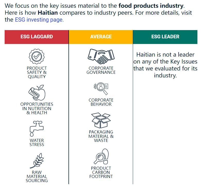 反观海天味业的经营模式,在“营养与健康机遇”方面缺乏主动的投入。