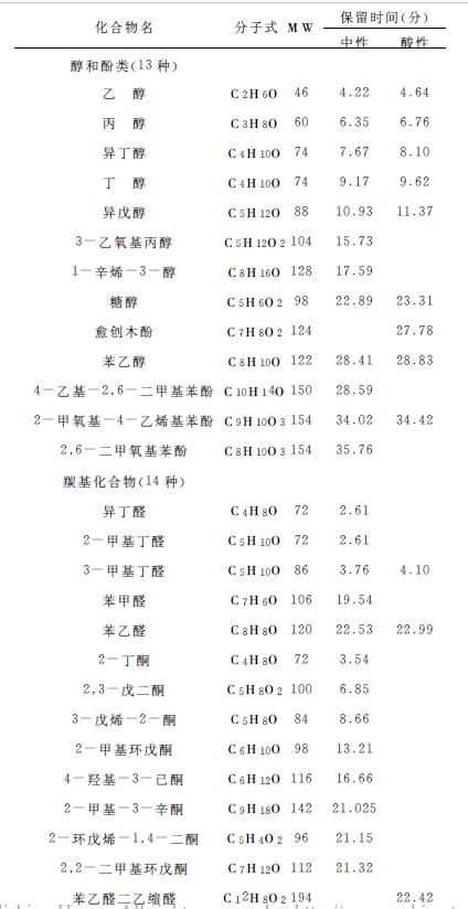 图:江南大学王林祥等对自然发酵酱油中香气成分的化学分析结果(局部)