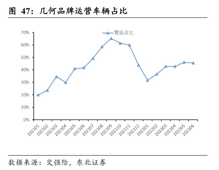 数据显示,2021年几何终端销量中有50%左右为网约车,虽然这个比例今年有所下降,但也维持在40%以上。