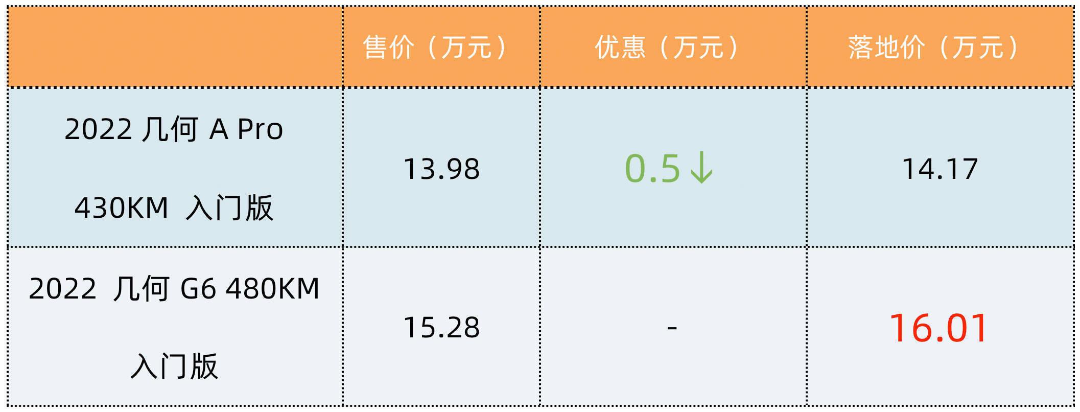 几何G6相比现款几何A Pro实际上提升的地方,除了外观和内饰的一些变化以外,其他地方几乎没有什么变化,包括车身尺寸都一样,但价格却比几何A Pro高出2万。