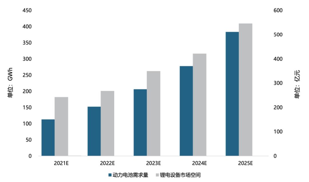 展望叠片工艺产业未来发展趋势:由于叠片工艺适用于大尺寸方形电芯的生产,未来叠片机在方形电芯生产中的渗透率有望提升;到2025年国内锂电设备市场空间将超过500亿元,叠片机渗透率有望达到10%左右。
