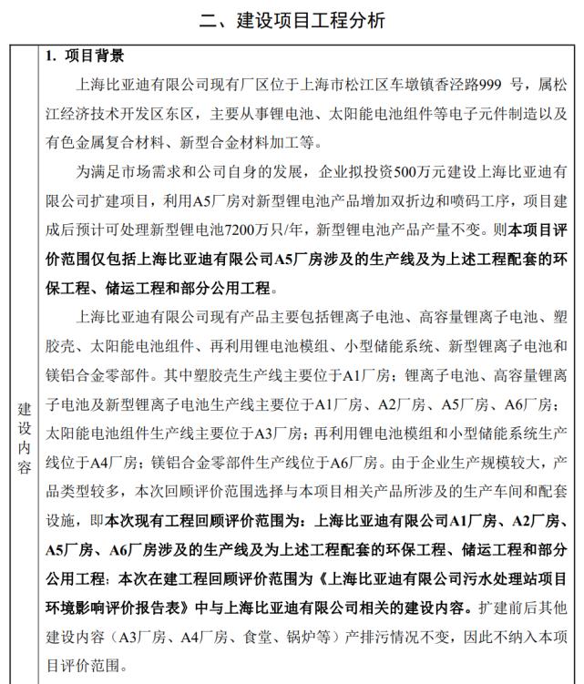 来源 | 上海比亚迪扩建项目环境影响报告表部分截图