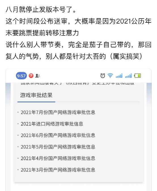 当然,这并不是太吾第一次经历差评轰炸,此前制作组因为跳票和“游戏送审”等事件已经遭遇过褒贬不一的差评。这次上线的仓促也是在于游戏早早公布上线时间,无路可退。