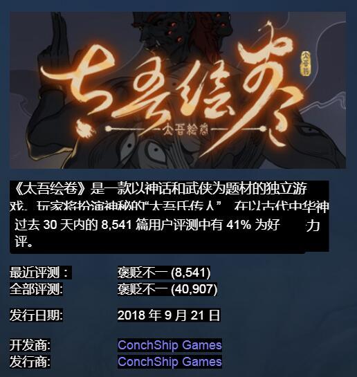 良心运营曾经的确是国产独立游戏保持口碑的秘诀,游戏有BUG、内容不够丰富或是美术不过关,只要免费,玩家就会拿出耐心。《太吾绘卷》这次的良心运营不能说没有作用,毕竟游戏还保持了41%的好评,而没有像上半年某几款独立游戏那样直接开始竞争“差评最多国产游戏”名额。从这点上说,反商业的运营的确是《太吾绘卷》独一份的标签。但能够像茄子这样操作的制作人,毕竟是少数。