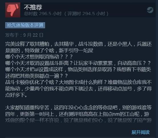 9月21日,国产独立游戏《太吾绘卷》迎来了游戏“正式版”的更新。游戏的更新时间定在晚上23:00,但依然挡不住热情玩家第一时间进入游戏连夜体验。然而预期的“吹爆”并没有出现,伴随而来的却是几千条差评。截至9月30日游戏新版上线一周,Steam平台新增评论的好评率仅有41%,游戏的近期评价跌到了褒贬不一。