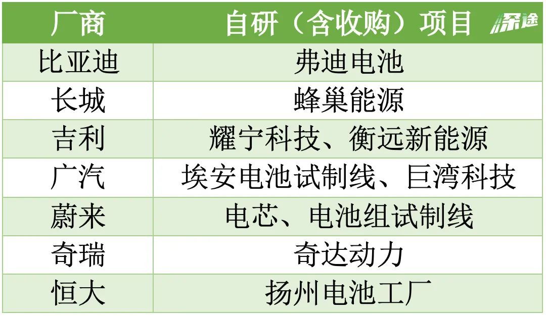一部分车企在规划动力电池的自研。