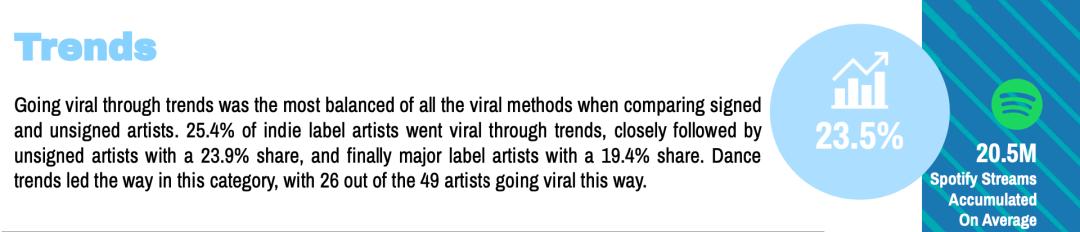 此外,助力音乐作品形成病毒式传播的另一个重要原因,是这些音乐作品的翻拍视频都形成了特定的流行趋势(Trends),ContraBrand界定是Top 100视频采用同样的逻辑即属于这个类别。