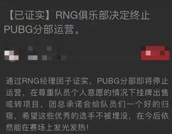 RNG终止绝地求生分部运营