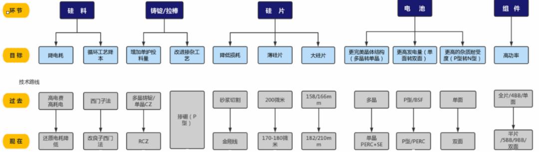 图:光伏产业链各环节技术进展,来源:兴业证券
