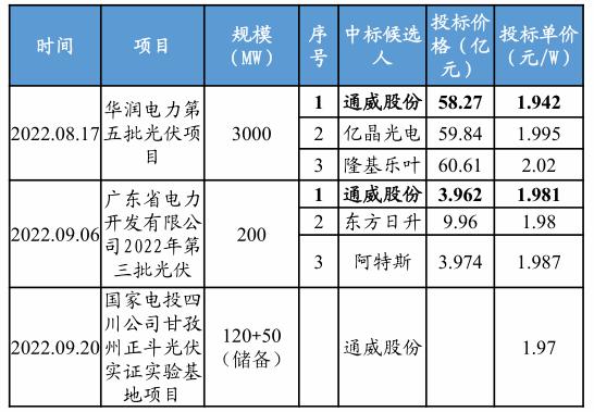 图:通威股份光伏组件中标情况,来源:东吴证券