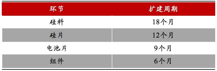 图:光伏主产业链各环节扩产周期,来源:各公司公告,东亚前海证券研究所