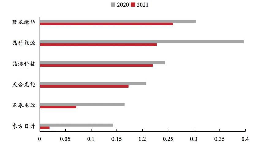 图:2020-2021组件业务单瓦盈利情况(元/W),来源:Wind,东亚前海证券研究所