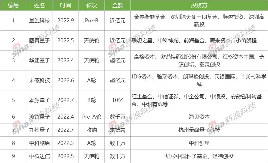 此前,谷歌、IBM、英特尔等国外科技巨头已先后推出自己的量子计算机及相关产品,国内方面,阿里、百度等企业,也先后围绕量子计算展开布局。与此同时,资本对于初创型量子计算企业的关注度也开始提高,据新浪科技不完全统计,今年以来至少有9家初创企业获得资本加持。