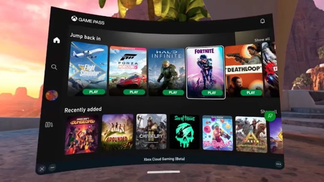 除了办公软件之外,另外一个重磅合作就是微软表示将Xbox的云游戏系统引入Quest VR 头显,Xbox 的Game Pass Ultimate 订阅者们将能够使用 Xbox 手柄在 Quest 内进行游戏。但跟Office软件一样,这些游戏目前也只是2D形式,并不是真正的VR版本。简单理解,就是目前只是在虚拟世界里给Xbox开了窗口,你可以在里边玩Xbox的游戏。