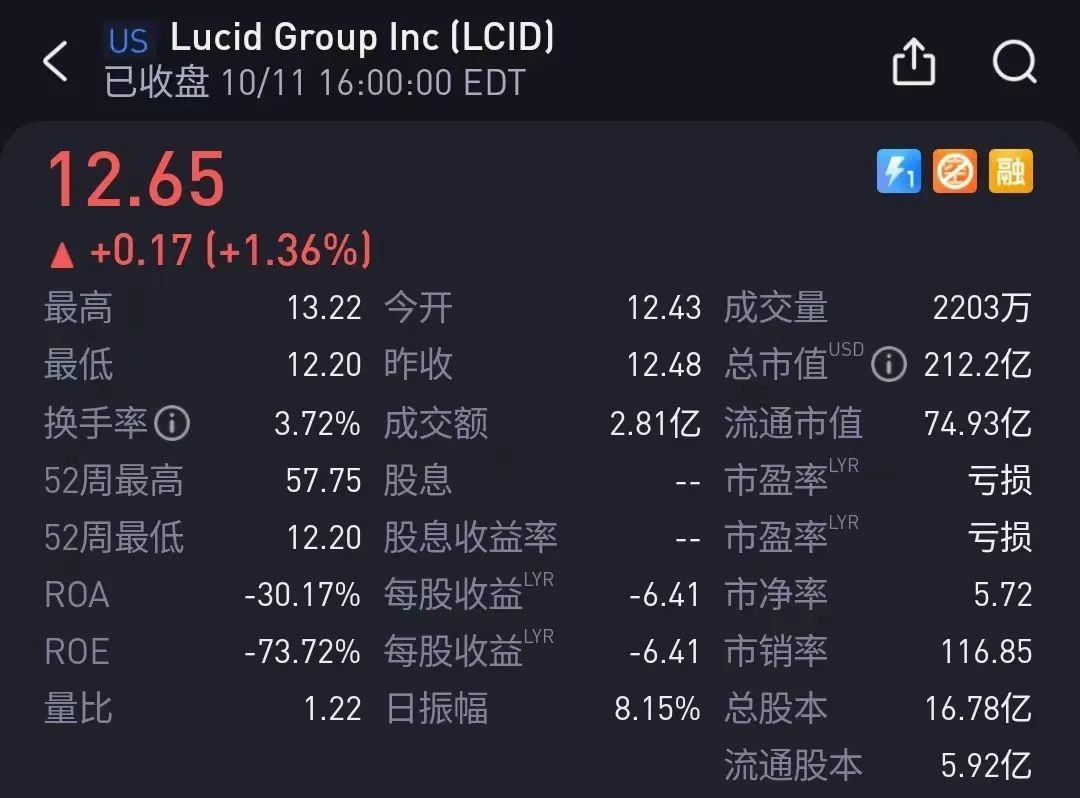 看到如此颓势,资本市场对其也没有多少信心,截至目前Lucid股价也较上市时的26.83美元/股跌去了52.9%。