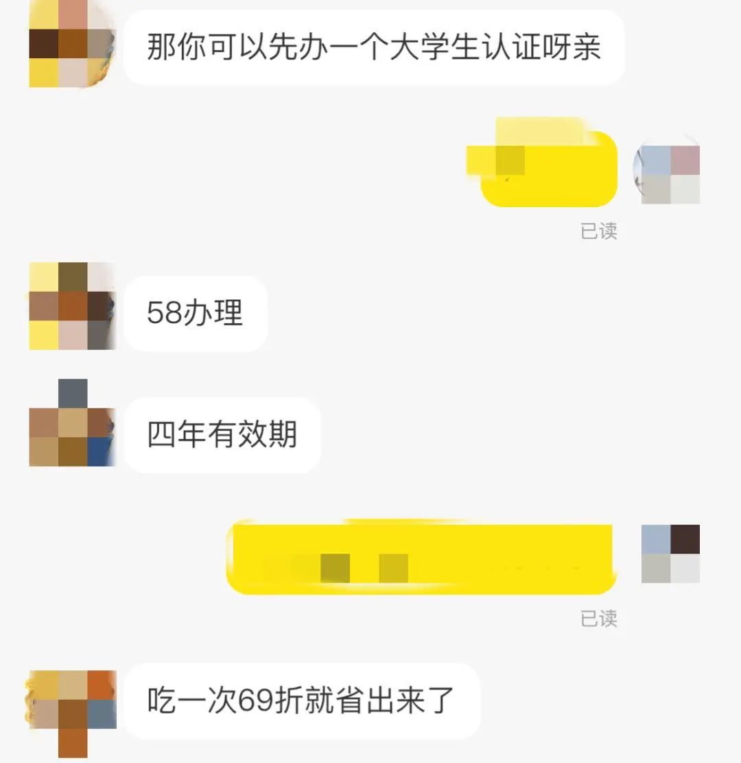 如今的年轻人省钱成习惯,海底捞学生卡工作日 6.9 折、周末 8.8 折,如果借用学生 69 折扣吃一顿 200 元的火锅能省 62 元,聚餐消费 400 元能省下 100 多,花费更低的价格享受同等的权益实在太香。