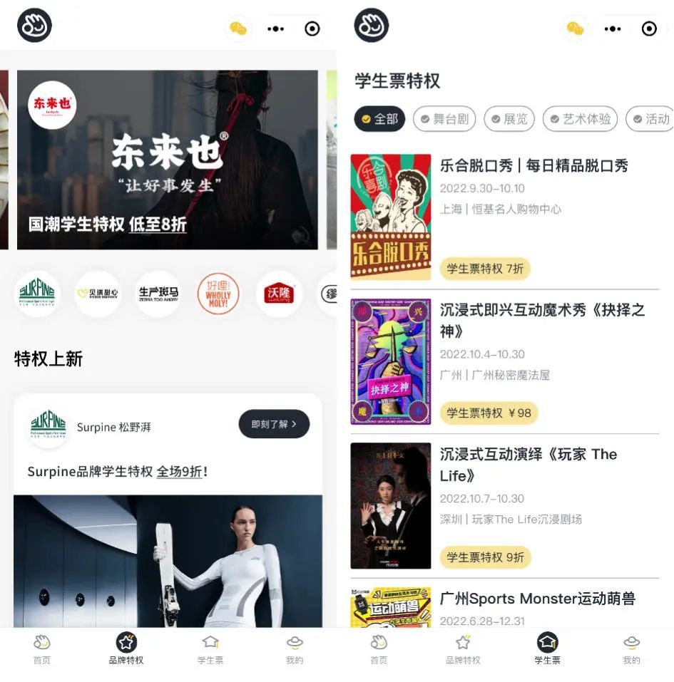 近年来品牌们争相推出学生优惠,还有商家专门开发微信小程序,搜集整理各种学生优惠,头部品牌、新消费品牌折扣,展览、脱口秀、舞台秀等学生门票都包含在内。对于学生来说,只需要一张学生证可以在吃、喝、玩、住等多样化需求里赚钱,而且至少 4 年内随时都能做。