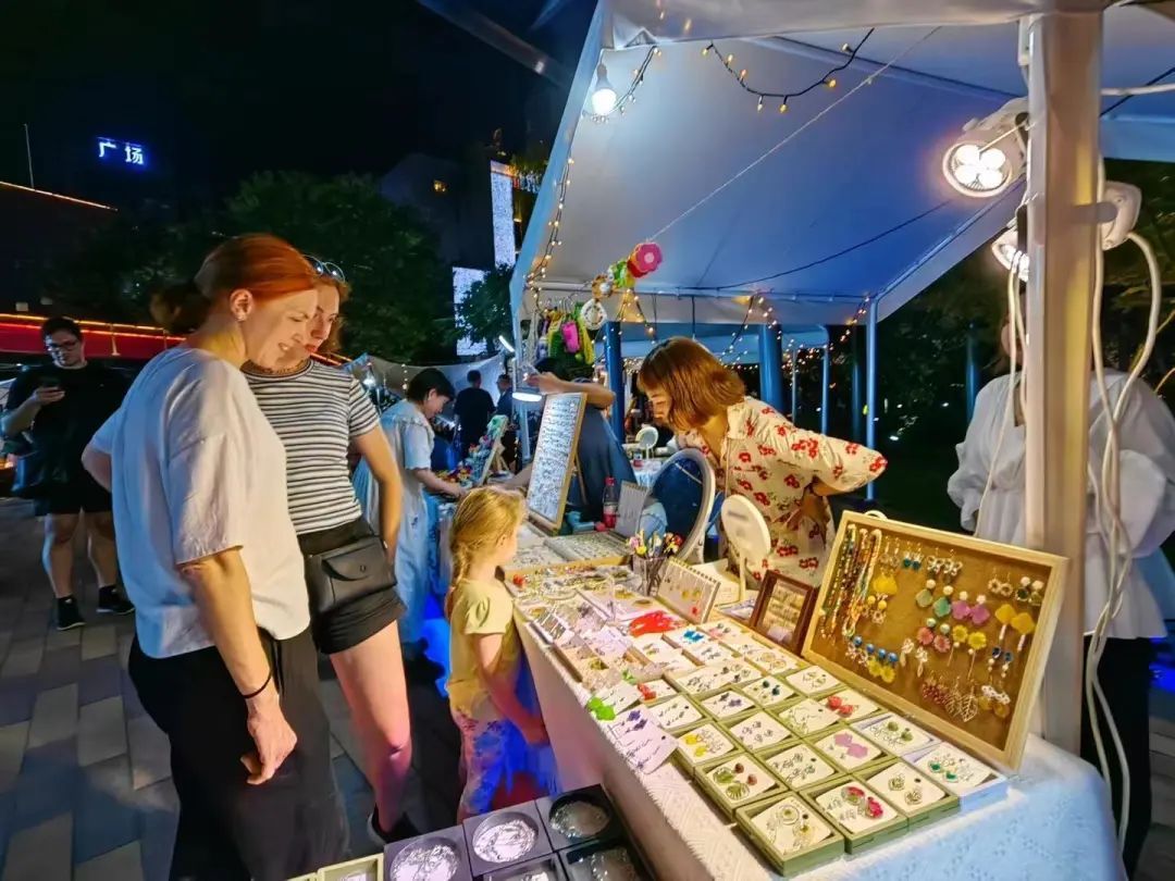 手作饰品,是集市上出现频率最高的摊位之一。这类商品很依赖市集的环境、布置和氛围感,要是在路边“野摆”,很容易被不了解手作的人误认为是廉价地摊货。
