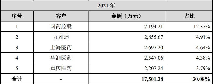 在复方消化酶胶囊、吡拉西坦注射剂等热销产品的带领下,公司积攒了一批大客户。根据招股书显示,2021年公司前五大客户分别是国药控股、九州通、上海医药、华润医药、重庆医药。