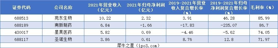 和同行业上市公司毛利率相比,公司近三年毛利率维持在77%左右,2021年毛利率为74.05%。同行业上市公司——苑东生物、南新制药、圣诺生物的毛利率分别是85.99%、86.7%、71.97%。