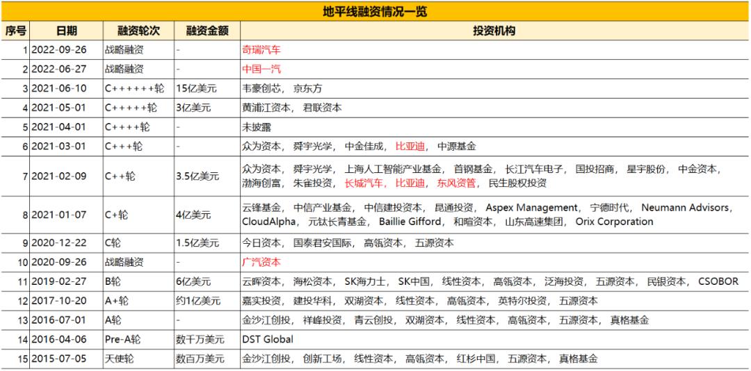 梳理官方信息,截止2022年9月,地平线已经完成了15轮融资。尤其是2020年底启动,到2021年6月结束掉的大C轮融资(C1-C7轮),狂吸15亿美元。