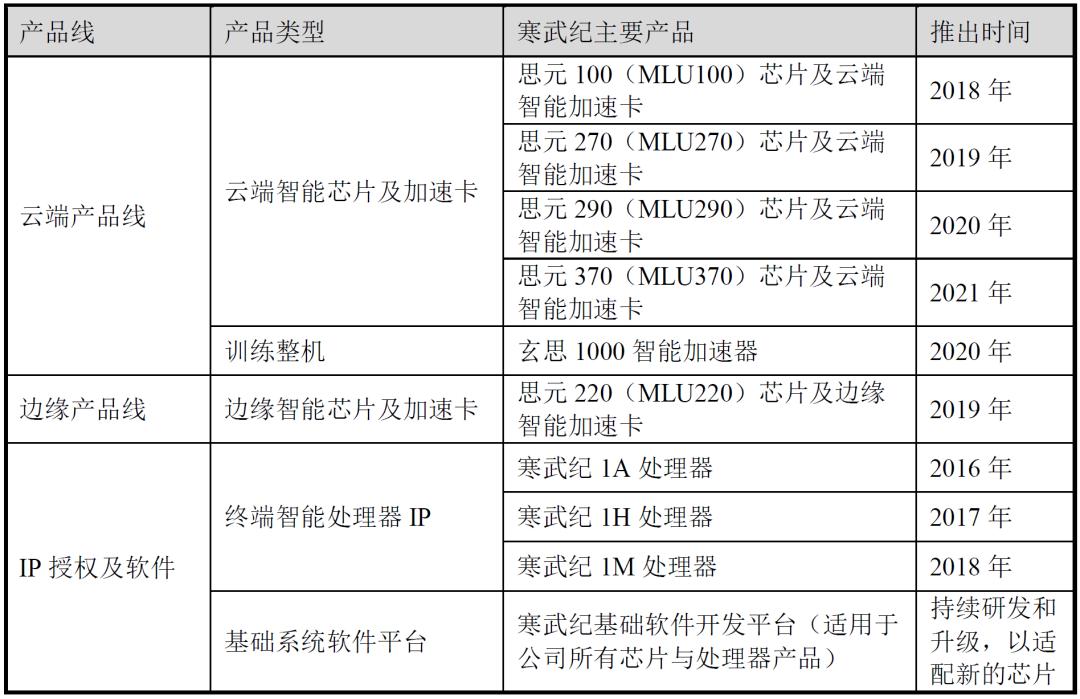寒武纪主要产品线(信息来自2022年上半年财报)